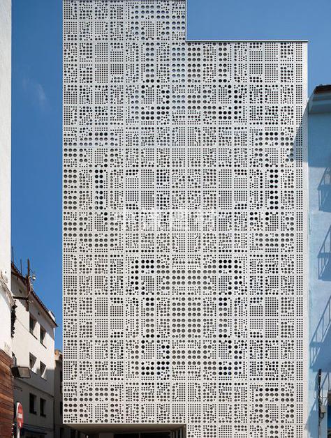 建筑幕墻墻體墻面裝飾沖孔網沖孔板材料以鋁板、鍍鋅板、不銹鋼板為底材,經過沖壓、整平、折彎、噴涂等工藝流程.